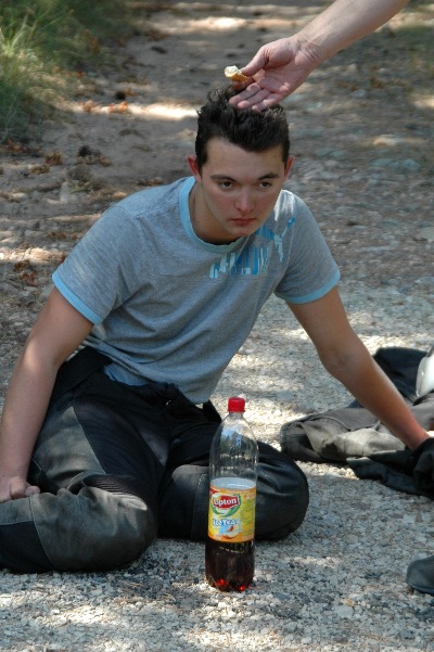 2009 Stephan total am Ende, aber glücklich!!! An diesem Abend hat uns ein französisches Rentner- ehepaar auf dem Campingplatz, wahrscheinlich aus Mitleid, mit leckeren Crepes versorgt. So etwas erlebt man nur auf einer Mopedreise.